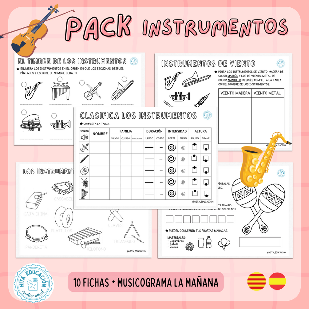 🗂️ PACK que incluye 10 Fichas Para trabajar las familias de instrumentos! 🎷🥁🪇